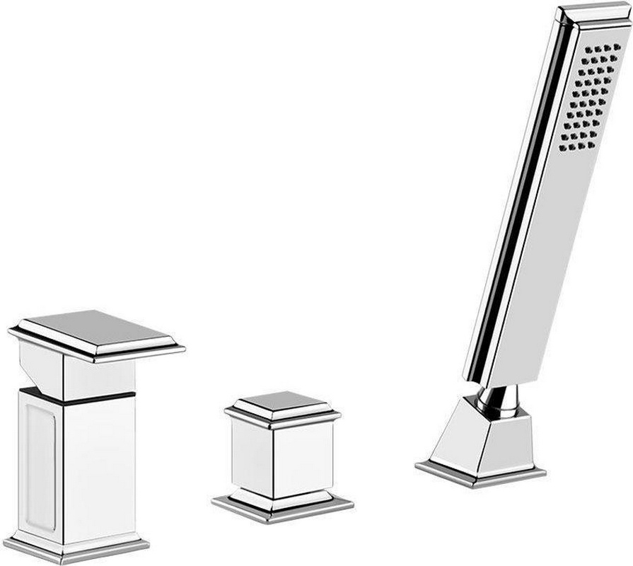 Смеситель для ванны встраиваемый в борт на 3 отв., БЕЗ излива, для наполнения через слив-перелив, лейка, шланг 1,5м. в компл., (цв. хром), Eleganza ZZ