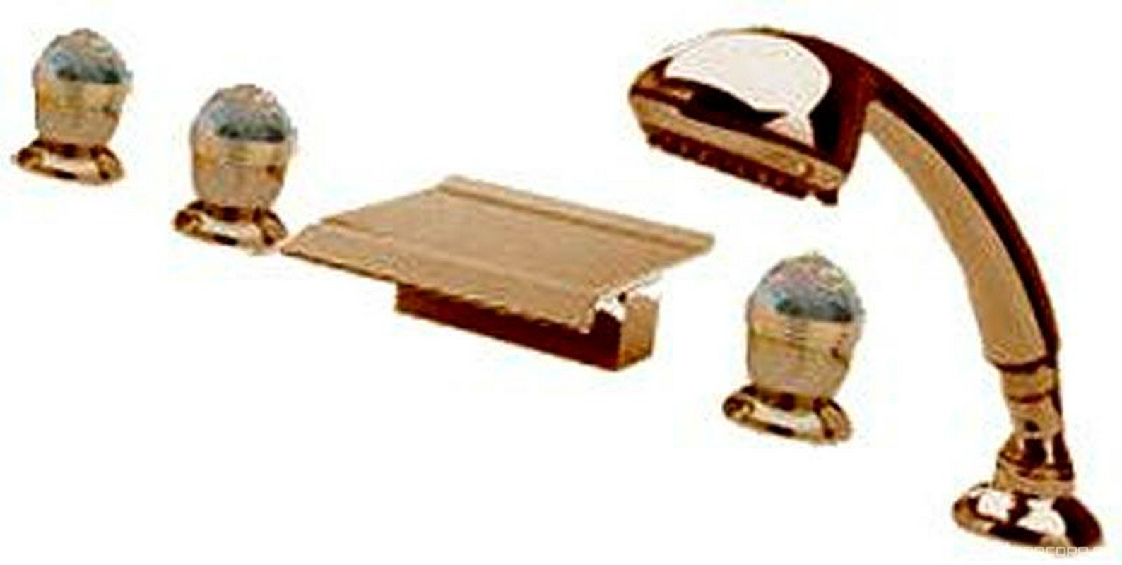 Смеситель для ванны, встраиваемый в борт, на 5 отв., излив каскад, шланг, лейка д/д в компл., (цв. золото), Okay Swarovski ZZ
