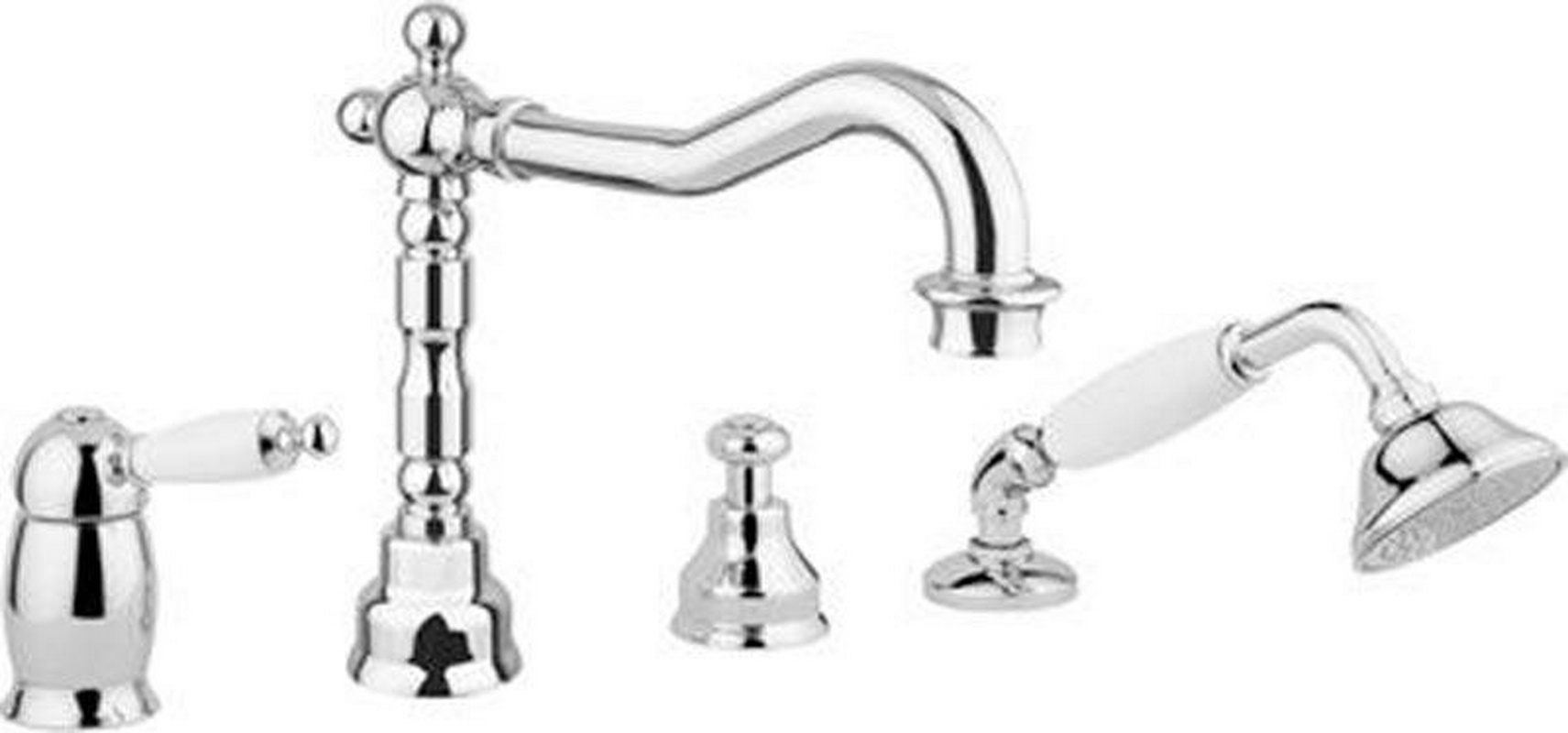 Смеситель для ванны, встраиваемый, на 4 отв., лейка, шланг в компл., (цв. золото, ручка цв. белый), Canterbury ZZ