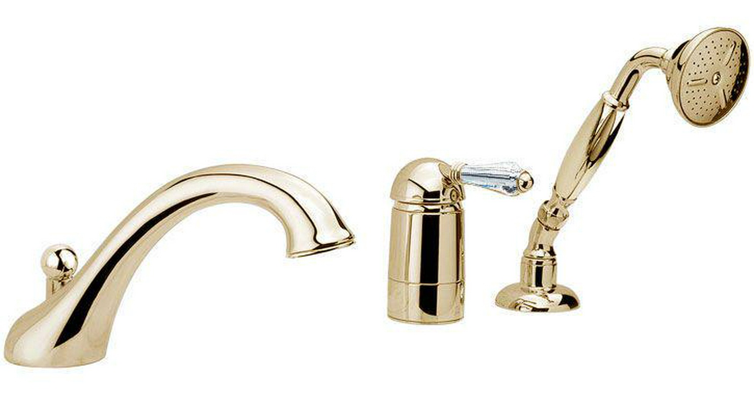 Смеситель для ванны, встраиваемый на 3 отв., лейка, шланг в компл., (цв.золото 24k, ручка Cristallo), Nicolazzi ZZ