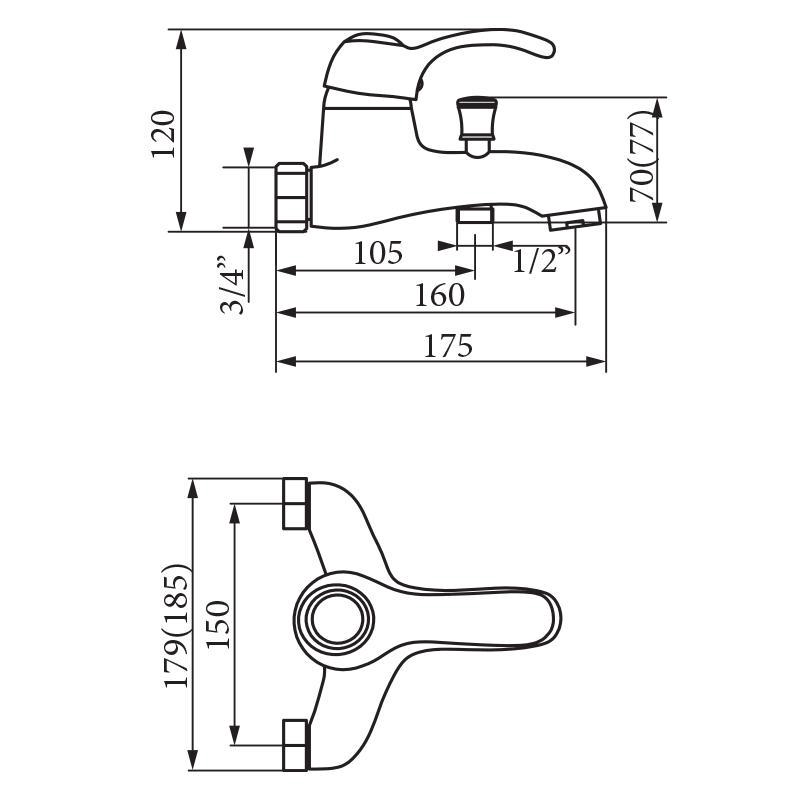 Смеситель для ванны/душа, короткий излив, с установочным комплектом, аксессуарами, хром XX