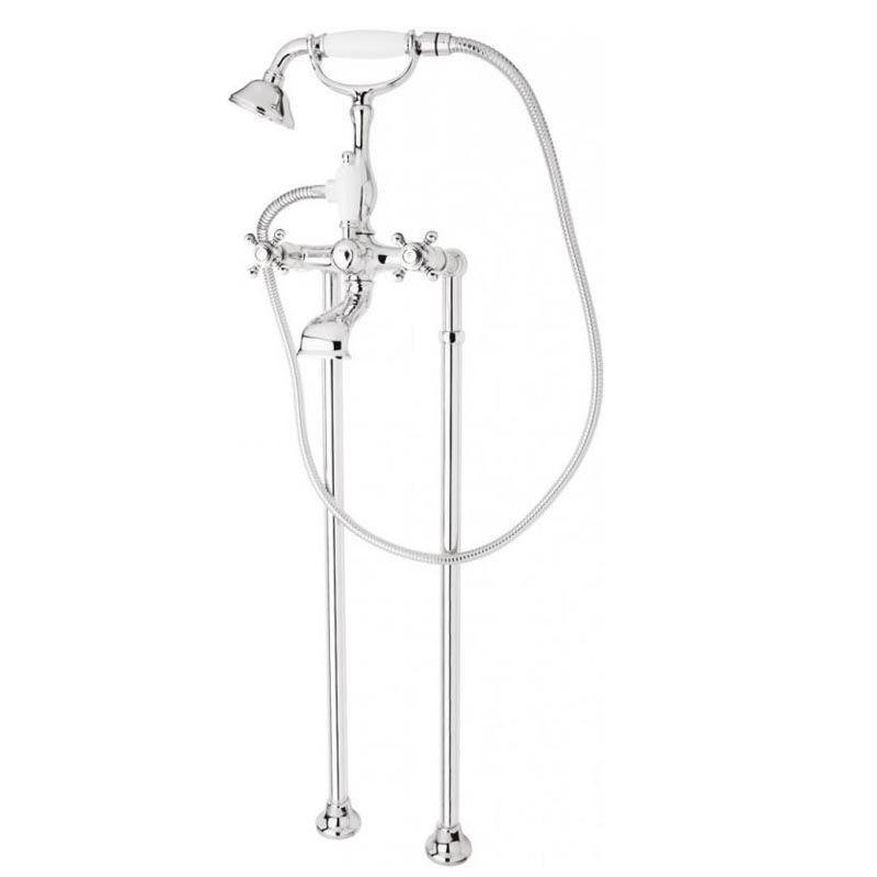 Смеситель напольный для ванны, с ручным душем и изливом, цв. хром