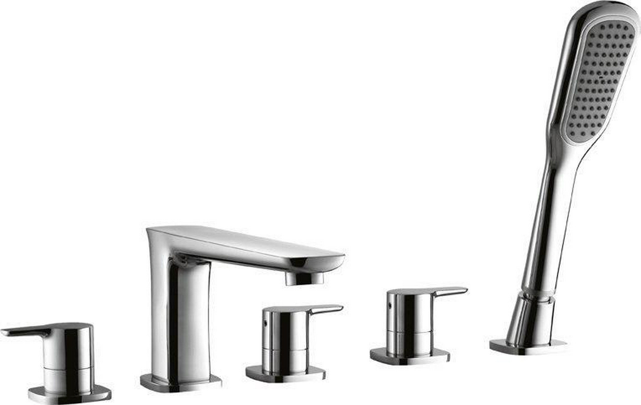 Смеситель для ванны, встраиваемый в борт, на 5 отв., лейка, шланг в компл., (цв. хром), Tesoro ZZ