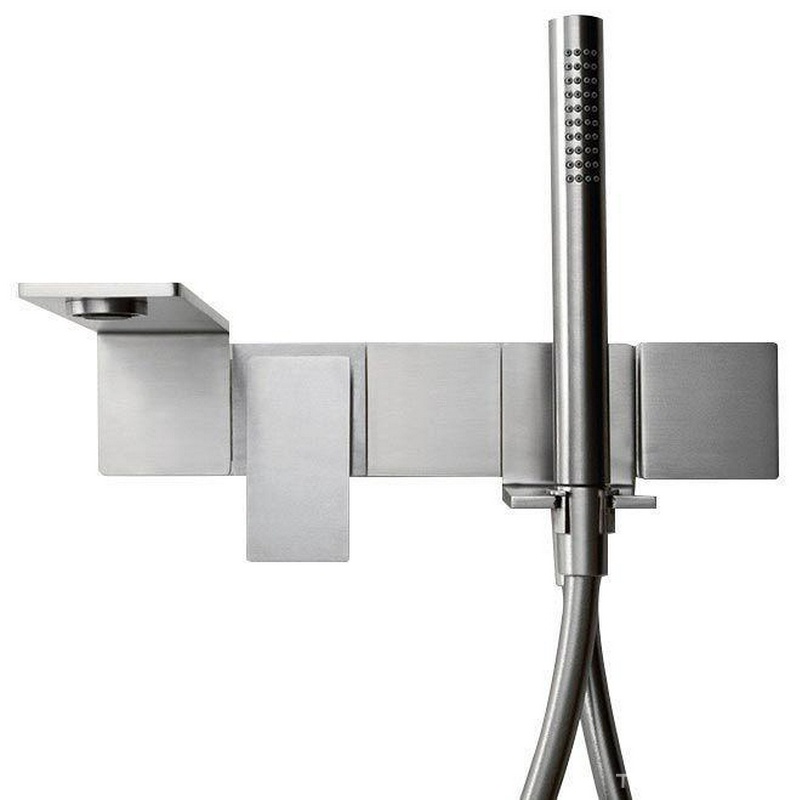 Смеситель для ванны, встраиваемый в стену, ручк., шланг, лейка в компл., (цв. тертая сталь), 5mm ZZ