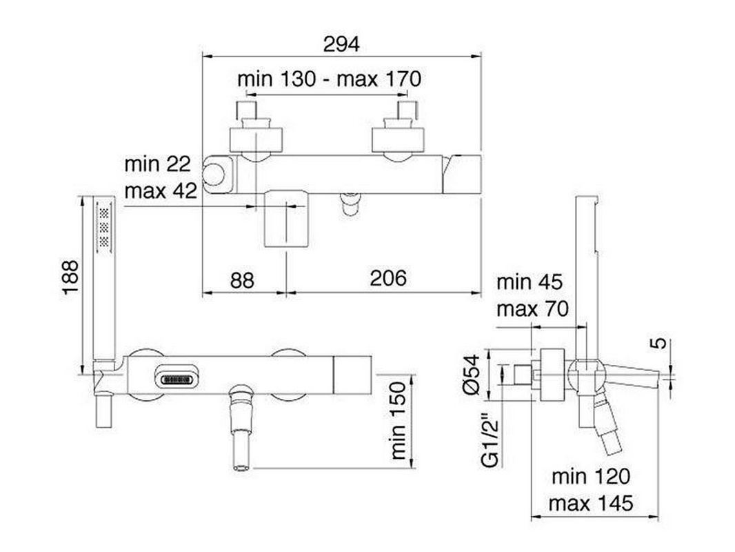 Смеситель для ванны, шланг, лейка в копмл., (цв.хром), NANOtech ZZ