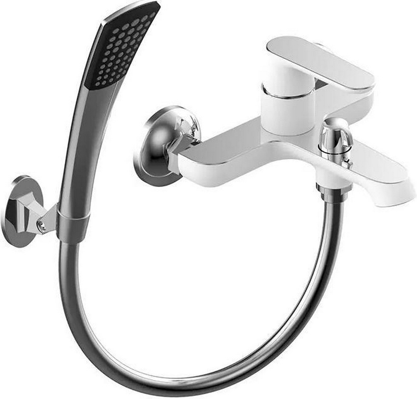 Смеситель для ванны/душа, короткий излив, с установочным комплектом, шланг и лейка в комплекте, белый/хром XX