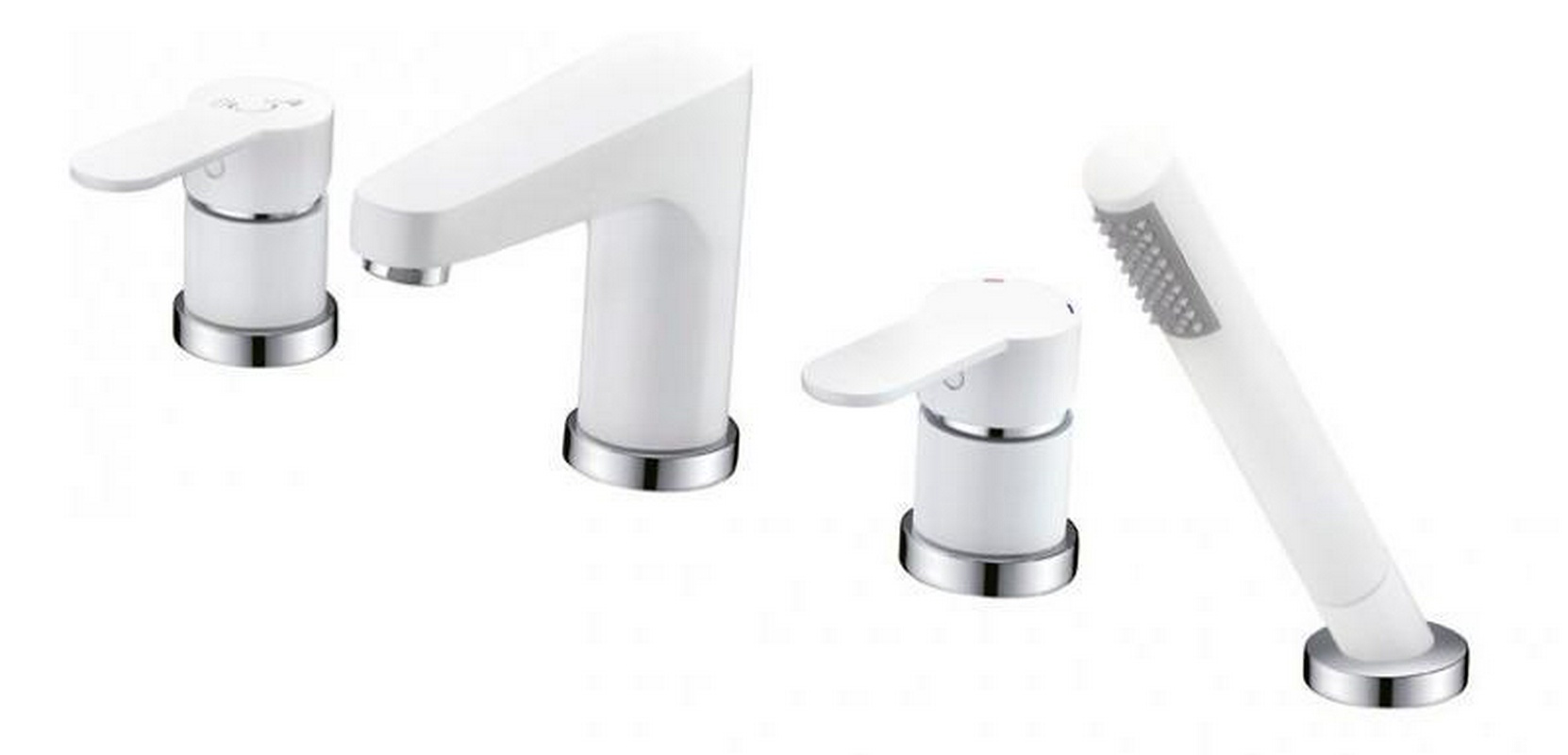 Смеситель для ванны, встраиваемый в борт на 4 отв., лейка, шланг в компл., (цв.белый), Leaf ZZ