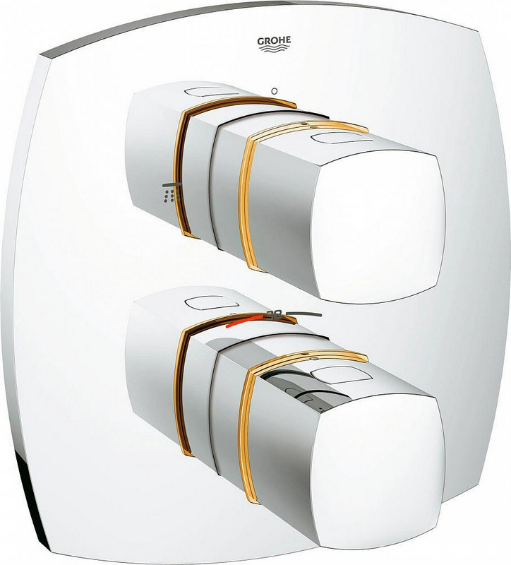 Смеситель с термостатом, наружная часть для ванны/душа для скрытого монтажа, без внутр.блока, хром/золото XX