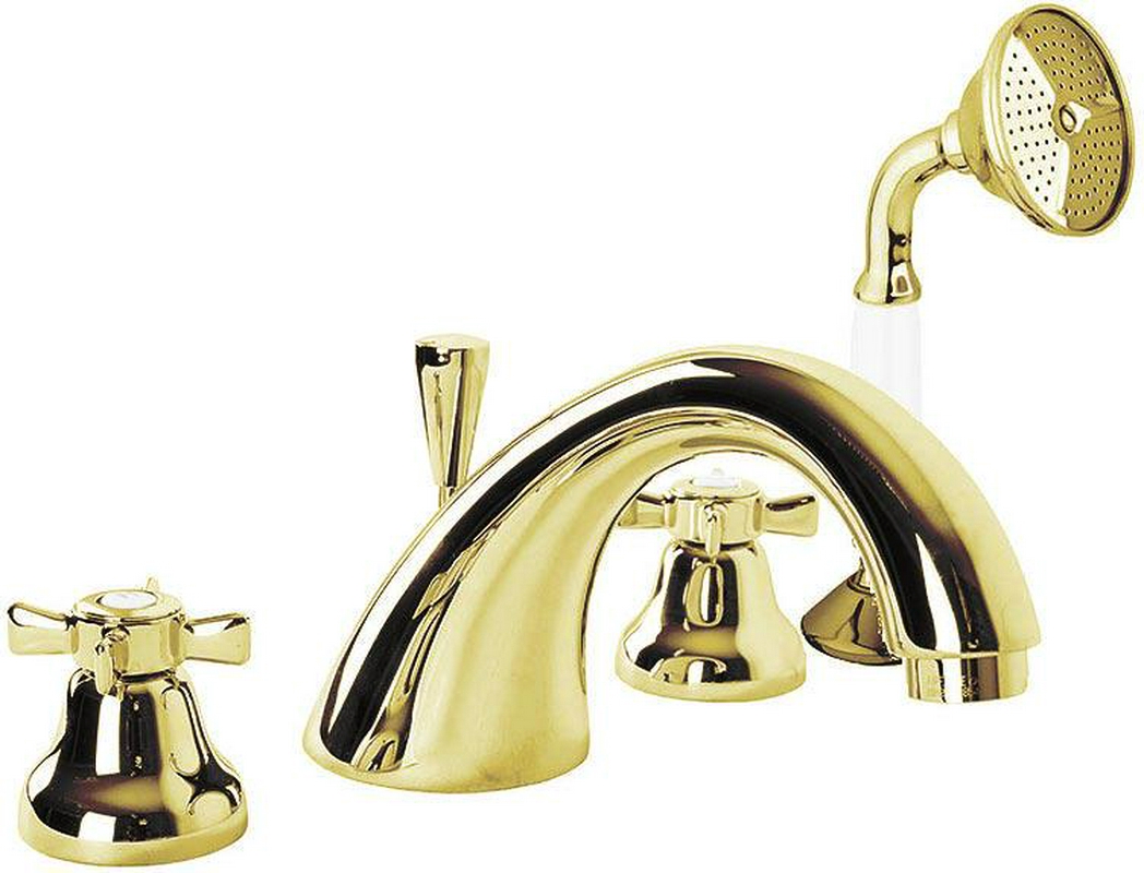 Смеситель для ванны, встраиваемый в борт, на 4 отв., лейка, шланг в компл., (цв. золото), Lord XX