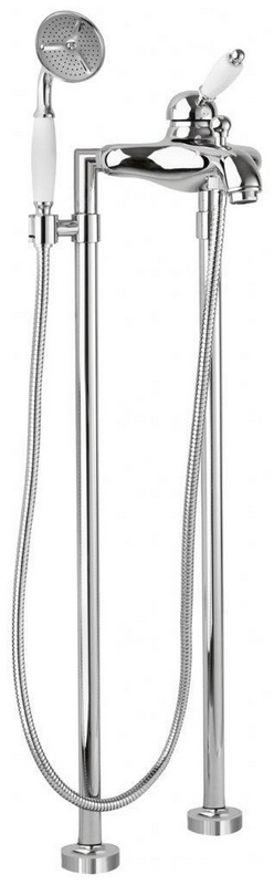 Смеситель для ванны, напольный, трубы 2шт., шланг, лейка в компл., (цв.хром, ручка цв.белый), ZZ Cezares Elite ELITE-VDPM-01-Bi