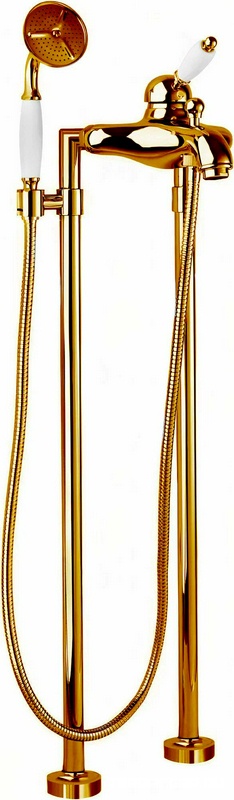 Смеситель для ванны, напольный, трубы 2шт., шланг, лейка в компл., (цв.бронза, ручка цв.белый), Elite ZZ