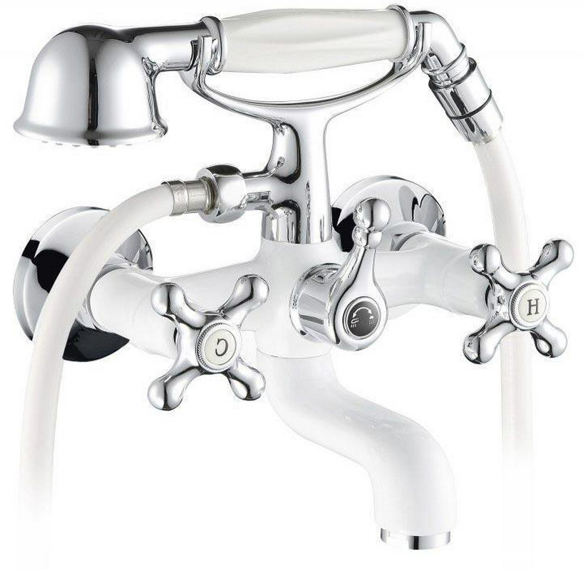 Смеситель для ванны, (класический излив) душевая лейка, шланг в компл., (цв. белый/хром), Retro XX