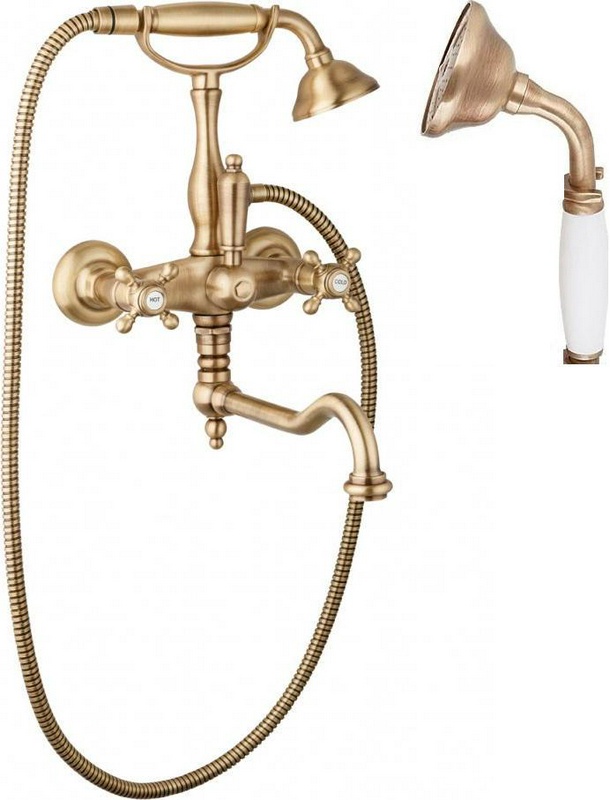 Смеситель для ванны/душа, короткий излив, с установочным комплектом, аксессуарами, бронза XX