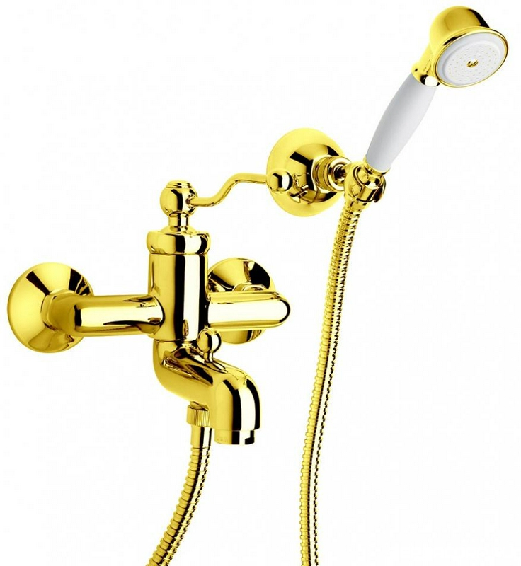 Смеситель для ванны, лейка, шланг, кронштейн в компл., (цв. Antique gold, ручка El Capitan), Classico ZZ