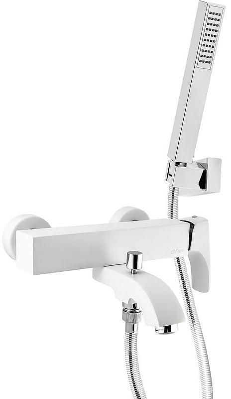 Смеситель для ванны, встраиваемый в стену, лейка, шланг в компл., (цв.белый матовый), Porta ZZ