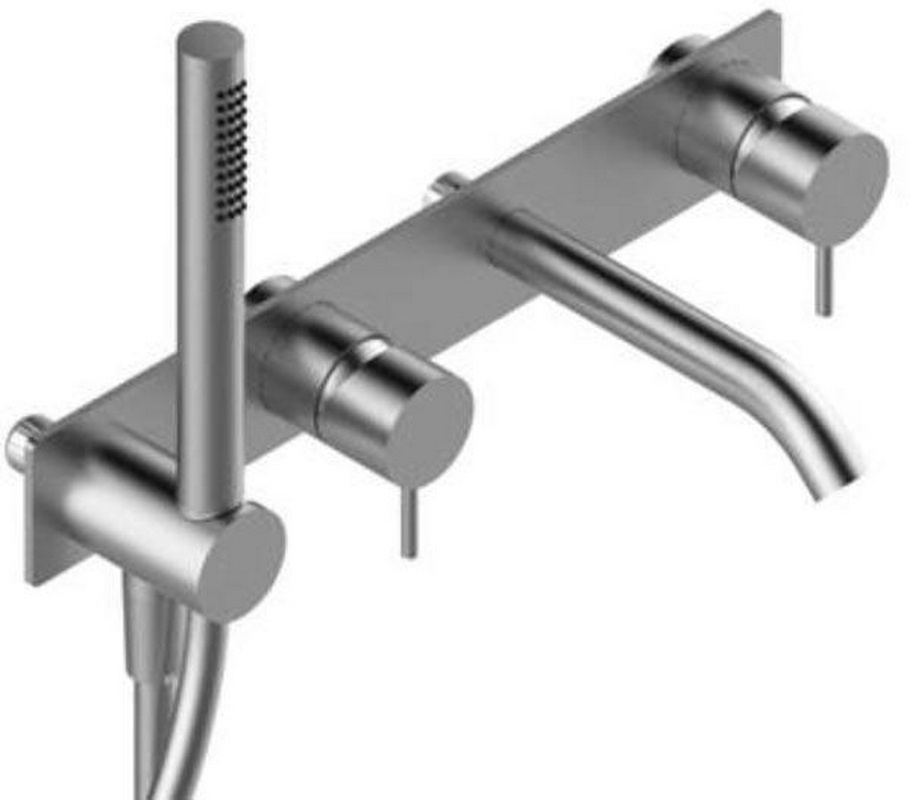 Смеситель для ванны, встраив.в стену, излив 160мм, с розеткой, шланг цв.белый, лейка в компл, БЕЗ внутр.части арт.3300 i401 AB0, (цв.нерж.сталь), Z316