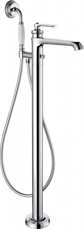 Смеситель напольный для ванны, с ручным душем и изливом, цв. хром