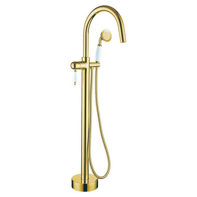 Смеситель для ванны, напольный, однорычажный, с душевым гарнитуром, цв.золото ZZ