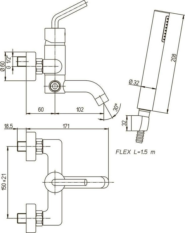Смеситель для ванны, лейка, шланг, кронштейн в компл., (цв.хром), Pixel ZZ