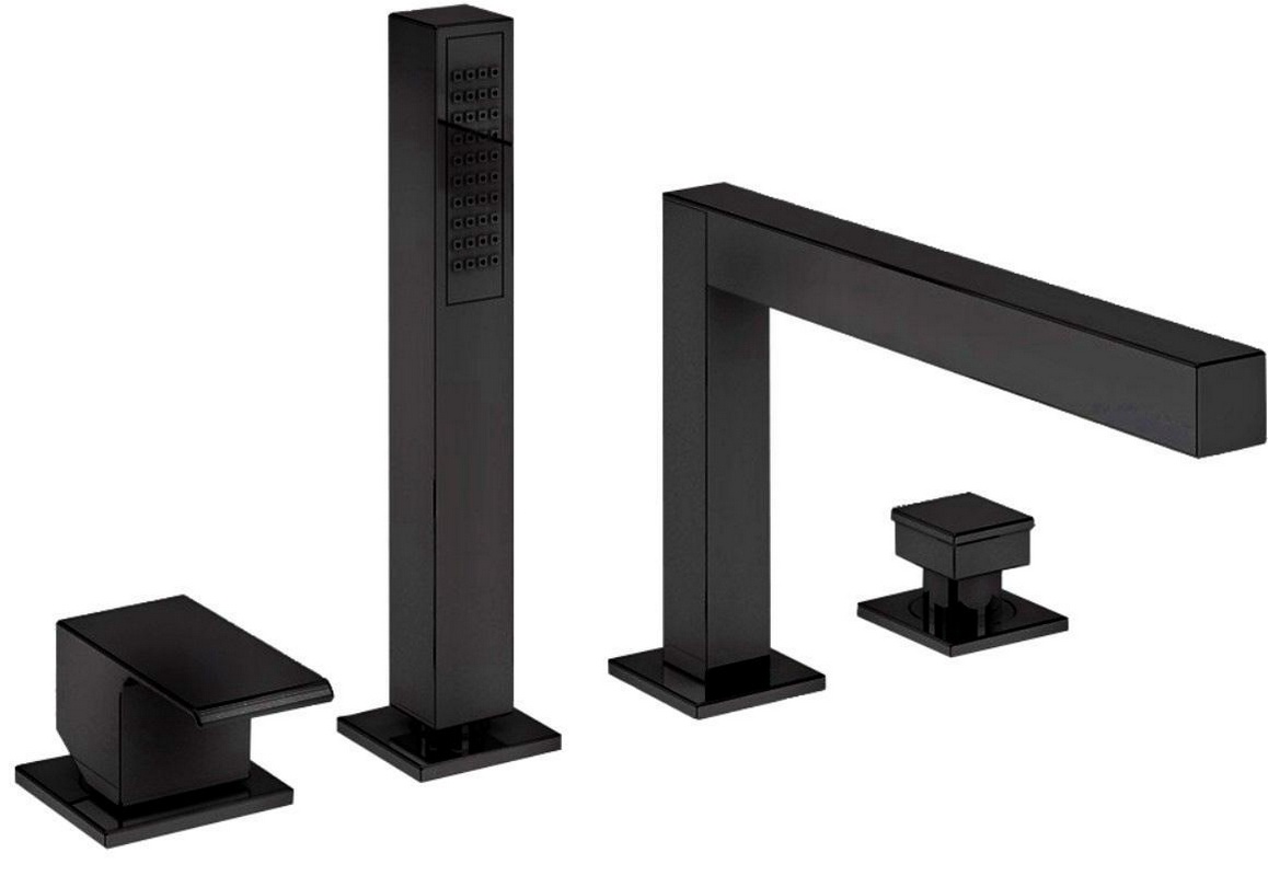 Смеситель для ванны, встраиваемый в борт на 4 отв., лейка, шланг в компл., (цв.черный матовый), Porta ZZ