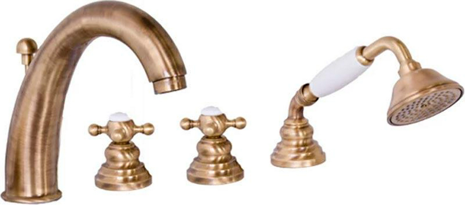 Смеситель встраиваемый в борт ванны на 4 отв., лейка, шланг в компл., (цв.бронза), Vivaldi ZZ