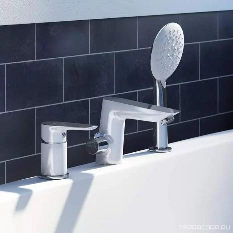 Смеситель Cloud на борт ванны на 3 отверстия с керамическим дивертором, цв. белый/хром, ZZ