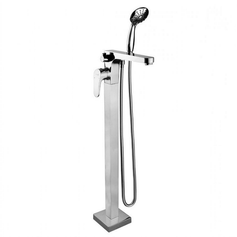 Смеситель напольный для ванны, с ручным душем и изливом, цв. хром
