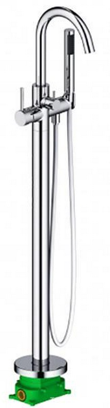 Смеситель напольный для ванны, с ручным душем и изливом, цв. хром