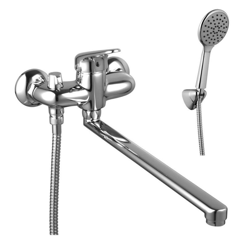 Смеситель для ванны/душа Like, с установочным комплектом, шланг, лейка, смеситель в компл, хром