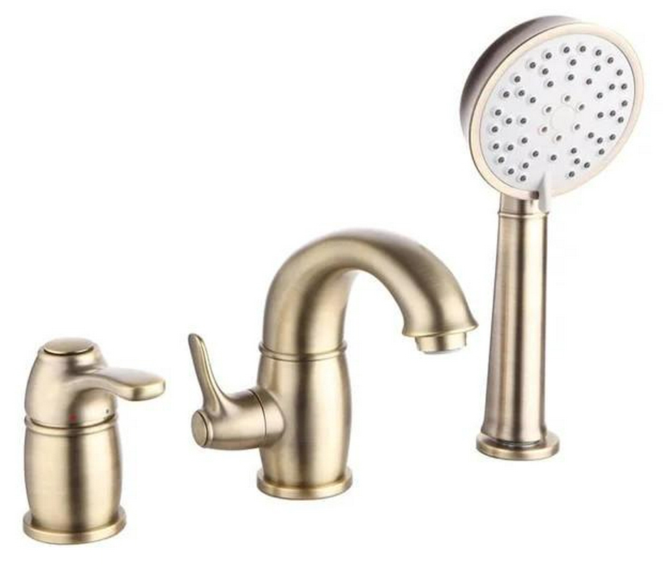 Смеситель для ванны, встраив. в борт на 3 отв., (лейка д/д, шланг в компл.), (цв. бронза), Bell ZZ