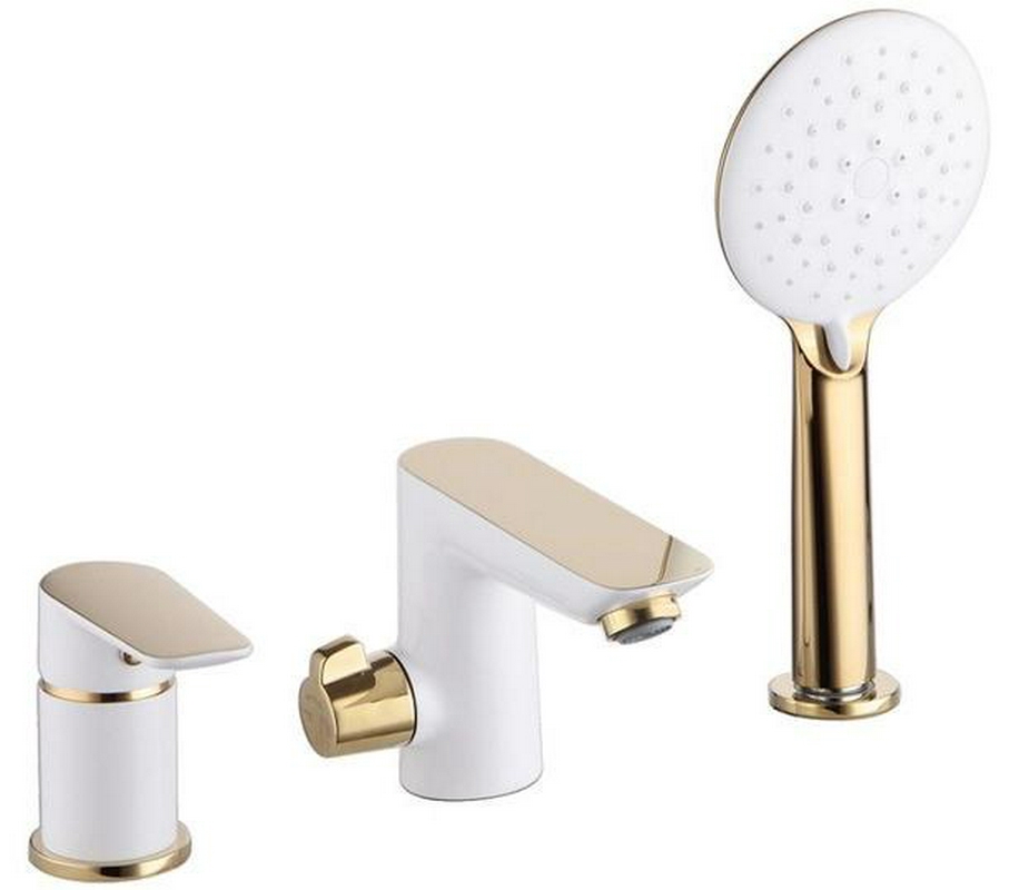 Смеситель Cloud на борт ванны на 3 отверстия с керамическим дивертором, цв. белый/хром, ZZ
