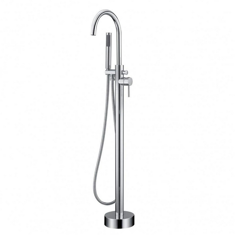 Смеситель напольный для ванны, с ручным душем и изливом, цв. хром