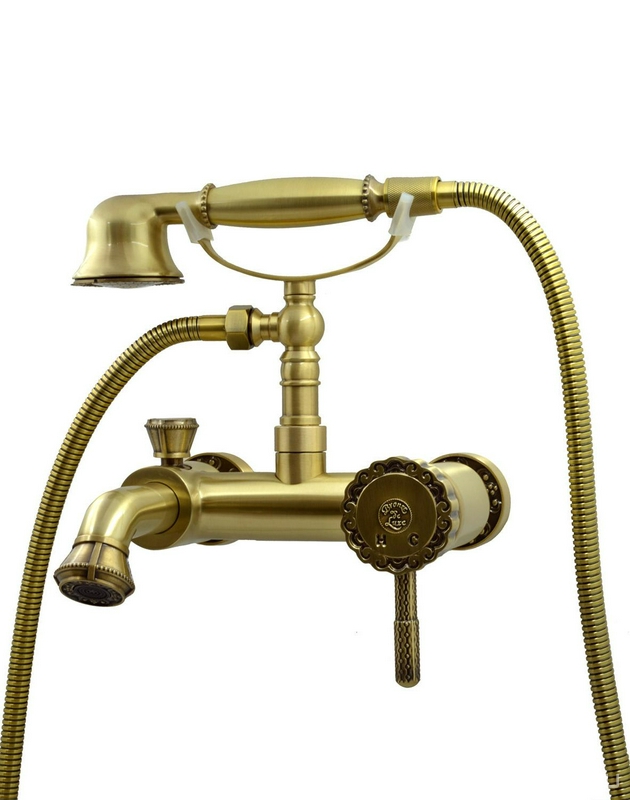Смеситель для ванны/душа, короткий излив, с установочным комплектом, аксессуарами, бронза XX