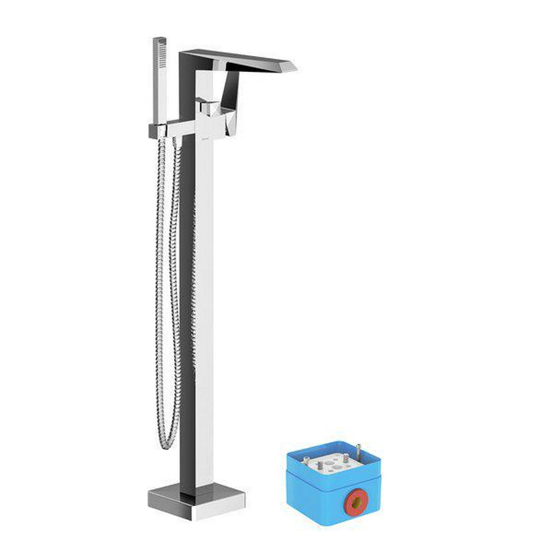 Смеситель напольный для ванны, с ручным душем и изливом, цв. хром