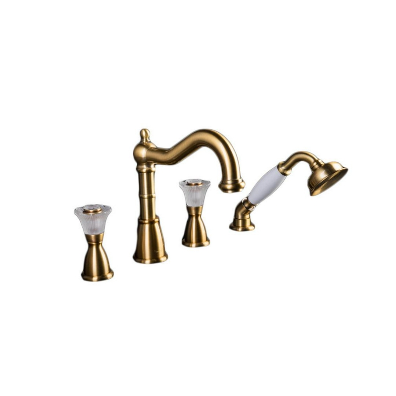 Смеситель для ванны, встраиваемый, на 4 отв., лейка, шланг в компл., (цв. бронза), Aston ZZ