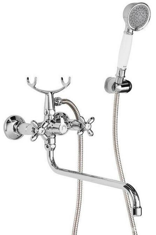 Смеситель для ванны, встраиваемый в борт на 4 отв., лейка, шланг в компл., (цв.белый/хром), Laconico ZZ