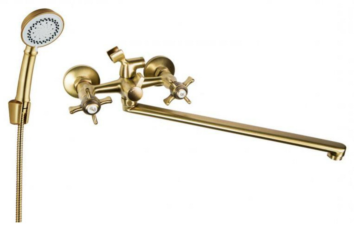 Смеситель для ванны/душа, длинный излив 350 мм, с установочным комплектом, аксессуарами, бронза XX
