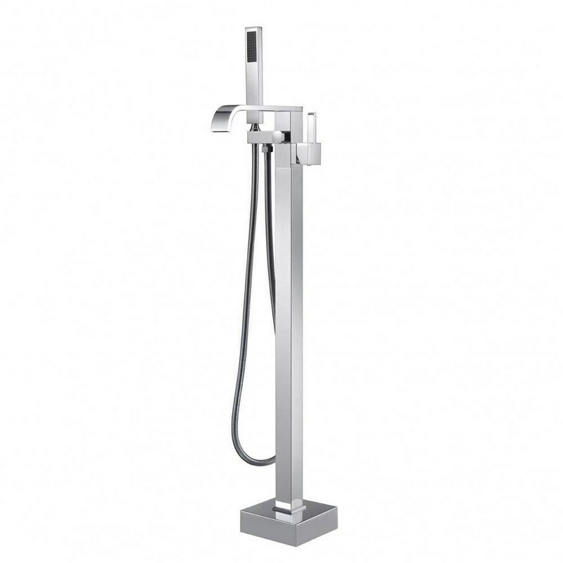 Смеситель напольный для ванны, с ручным душем и изливом, цв. хром