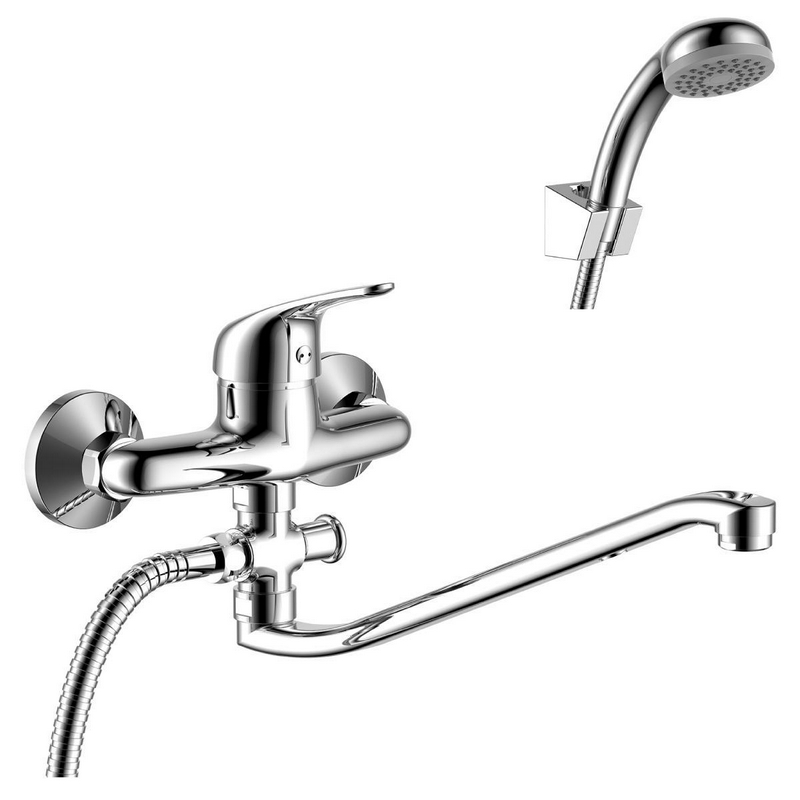 Смеситель для ванны/душа Like, с установочным комплектом, шланг, лейка, смеситель в компл, хром