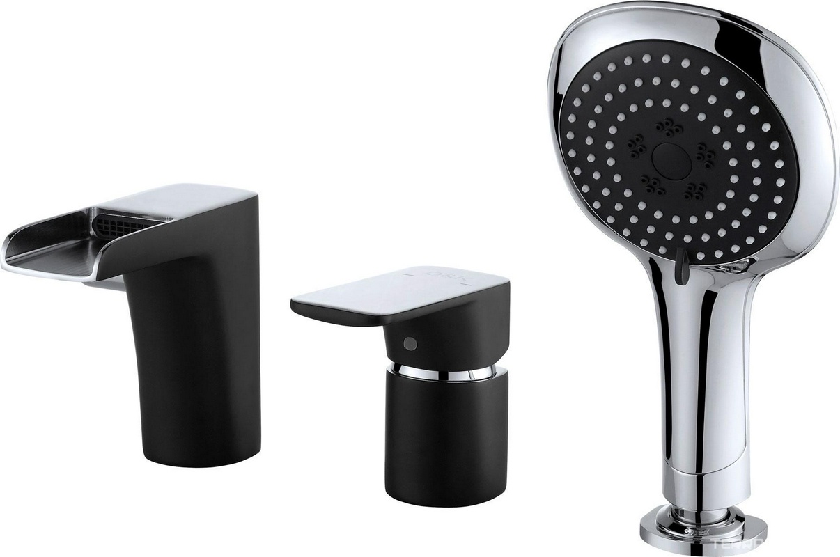 Смеситель для ванны, встраиваемый в борт на 3 отв., лейка, шланг в компл., (цв.черный матовый), Delta ZZ
