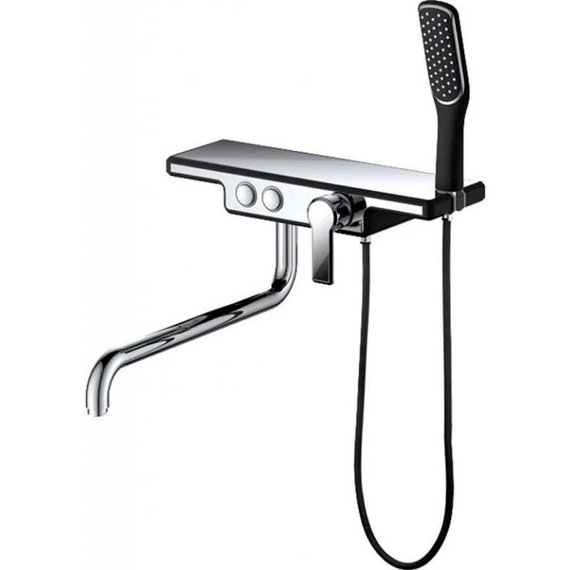 Смеситель для ванны, со стационарным верхним душем 305х205мм., душевая лейка, шланг в компл., (цв.черный матовый), Infinity ZZ