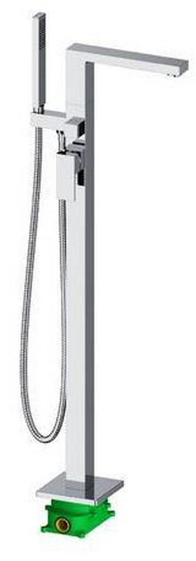 Смеситель напольный для ванны, с ручным душем и изливом, цв. хром