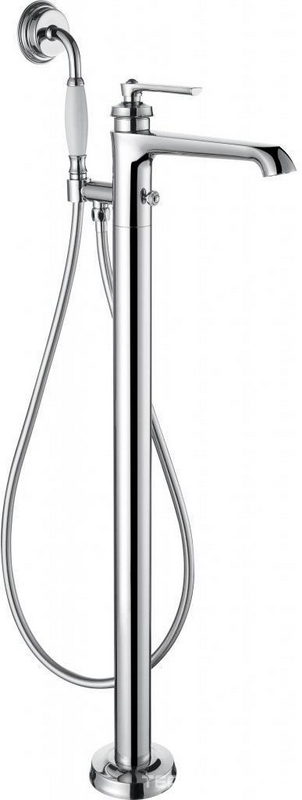 Смеситель напольный для ванны, с ручным душем и изливом, цв. хром