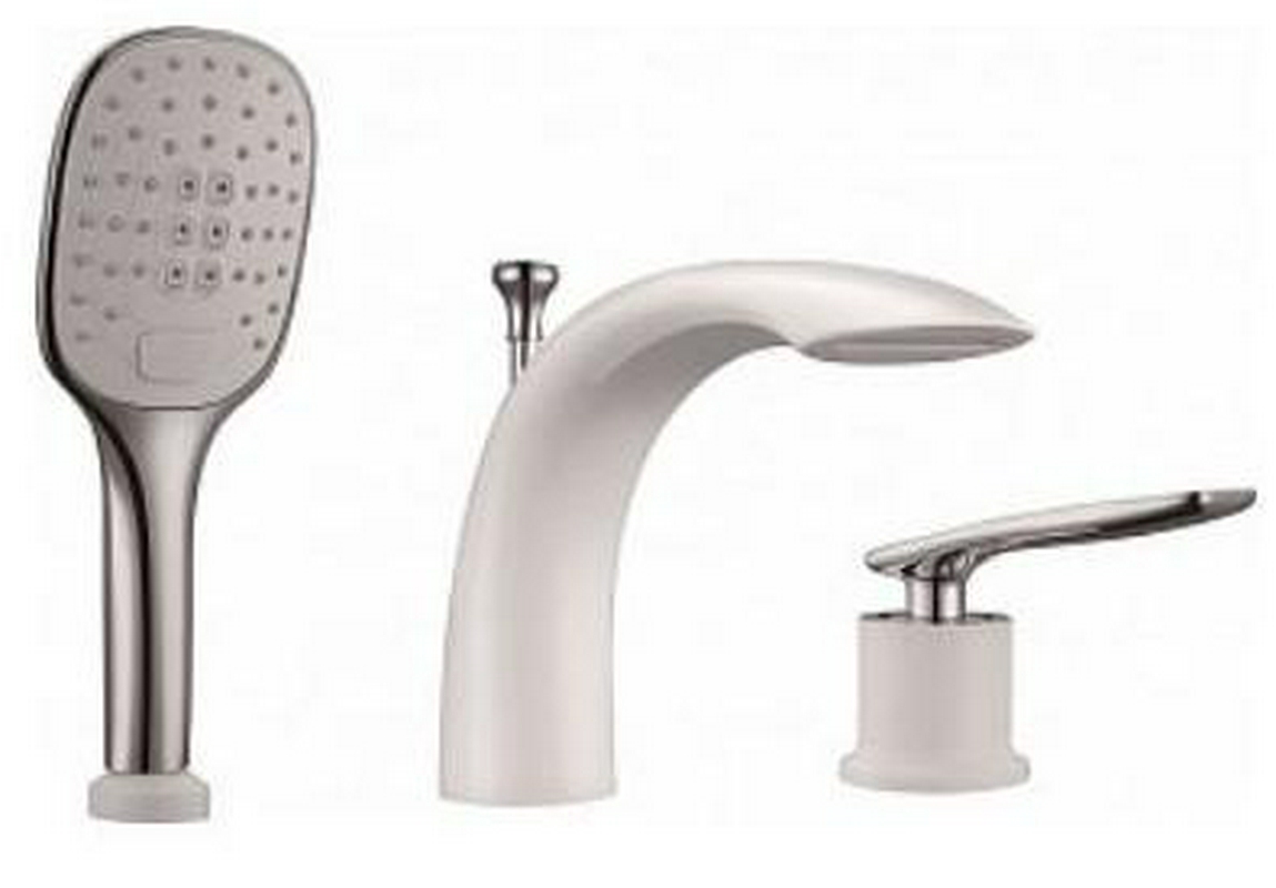 Смеситель Cloud на борт ванны на 3 отверстия с керамическим дивертором, цв. белый/хром, ZZ