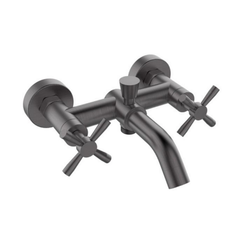 Смеситель для ванны, встраиваемый в борт на 4 отв., лейка, шланг в компл., (цв.Black Metal BrushedPVD), Origini ZZ