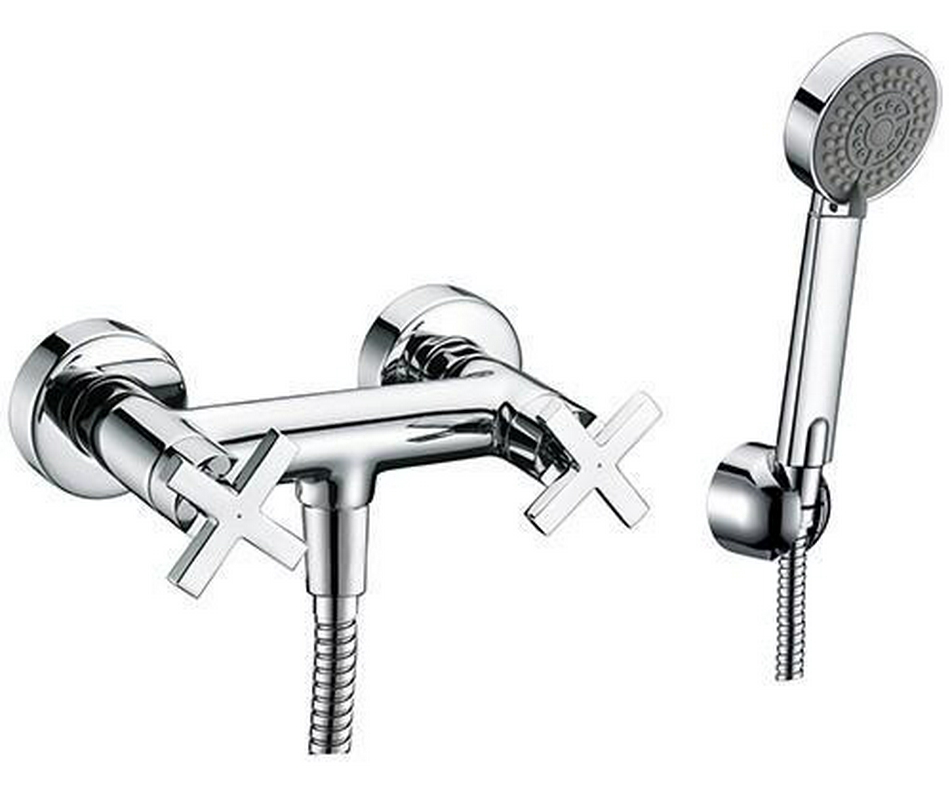 Смеситель для ванны, ручки "Крест", с душевым гарнитуром, (цв.хром), Bellagio ZZ