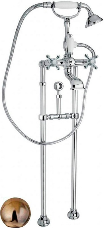 Смеситель для ванны, напольный, трубы 2шт., крепёж к сифону, лейка, шланг, кронштейн в компл., (цв. бронза), Princeton ZZ