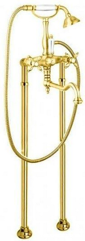 Смеситель для ванны, напольный, трубы 2шт., шланг, лейка в компл., (цв.золото, ручка цв.белый), Elite ZZ