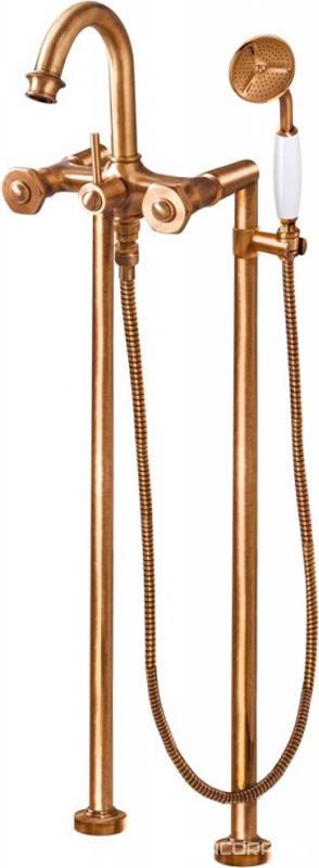 Смеситель для ванны, напольный, трубы 2шт., крепёж к сифону, лейка, шланг, кронштейн в компл., (цв. бронза), Princeton ZZ