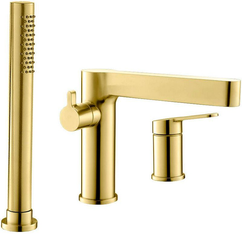 Смеситель для ванны, встраиваемый в борт на 3 отв., лейка, шланг в компл., (цв.браш.золото), Delta ZZ